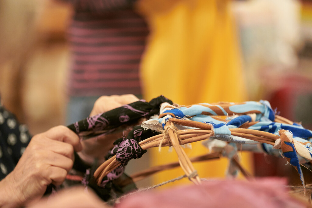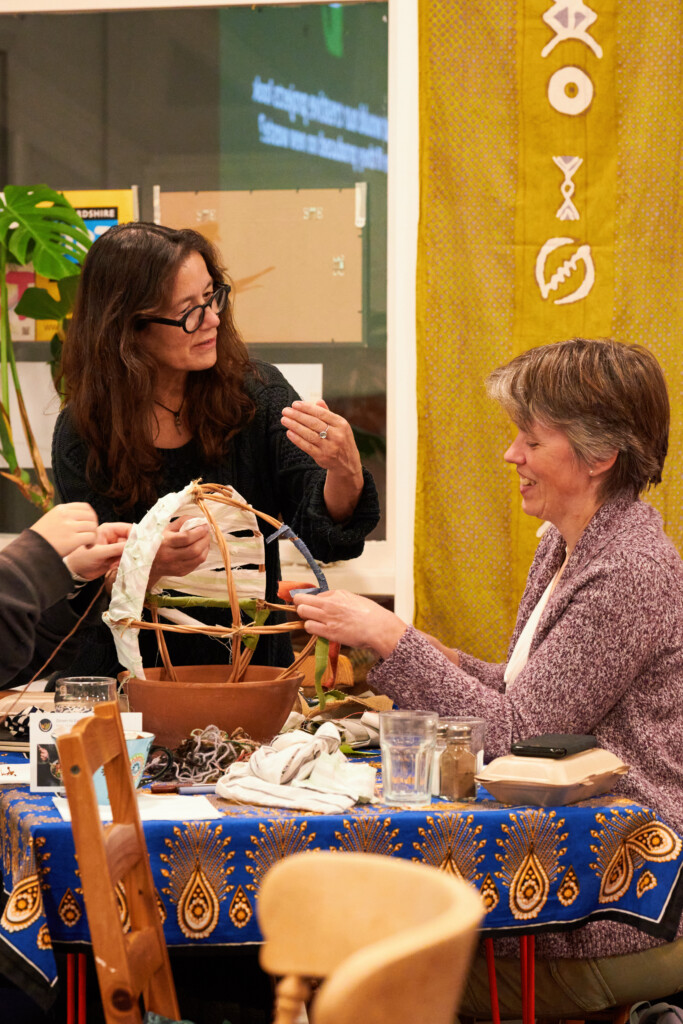 For this gathering we collaborated with Sustainable Wantage and Makespace Wantage to bring together local creatives to explore how we can harness arts and culture as tools to reduce waste through both the ways that we work and how we inspire others. Through a talk, discussion and creative weaving workshop with Andrea Sharp using scrap fabric, artists and community members connected over a meal made with surplus food from Down to Earth Cafe. We shared inspiring case studies, signposted to resources and suppliers and encouraged collaboration for creative waste reduction, providing motivation and building resilience through a sense of community.